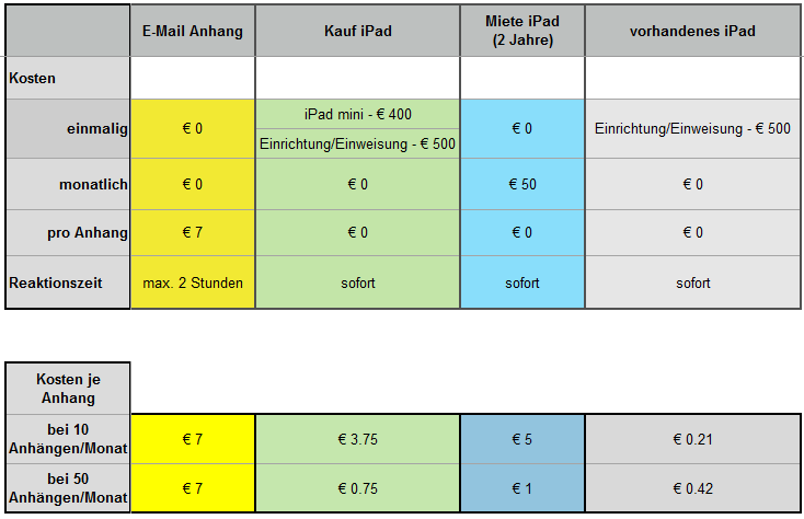 kann, stellen wir Ihnen 2 grundlegende Optionen bereit: 2. Sie wollen die Untersuchung selbst realisieren und dann können Sie ein iPad kaufen, ein iPad mieten oder ein vorhandenes iPad nutzen. Dafür fallen dann die unten stehenden Kosten an. ![]()
